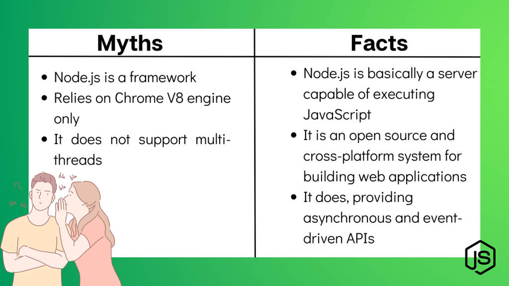 Now, there are some ideas about Node.js that aren’t exactly true. Like when people thought certain things about how Node.js was made or how it works. But those ideas have been proven wrong—kind of like when someone tells you something about a game, but it turns out to be totally different. So, some things people used to think about Node.js aren’t actually the way it is!